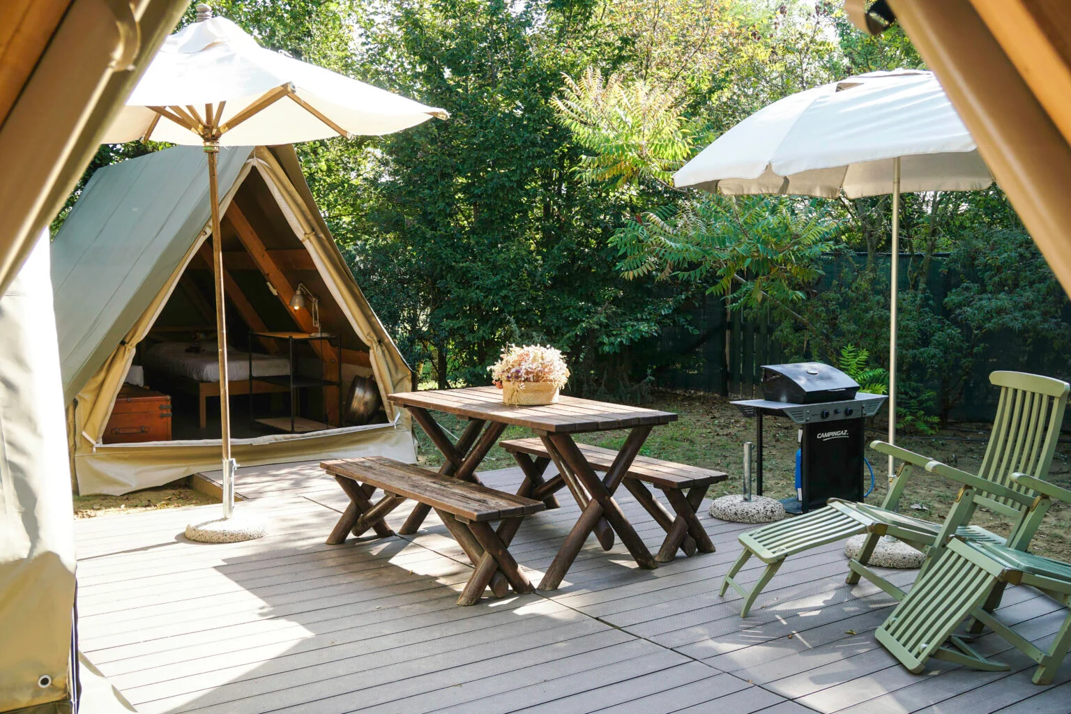 Un weekend romantico in tenda è fatto di libertà: scegliere quando uscire, quando restare, quando concedersi un servizio e quando invece fermarsi, semplicemente, in veranda.